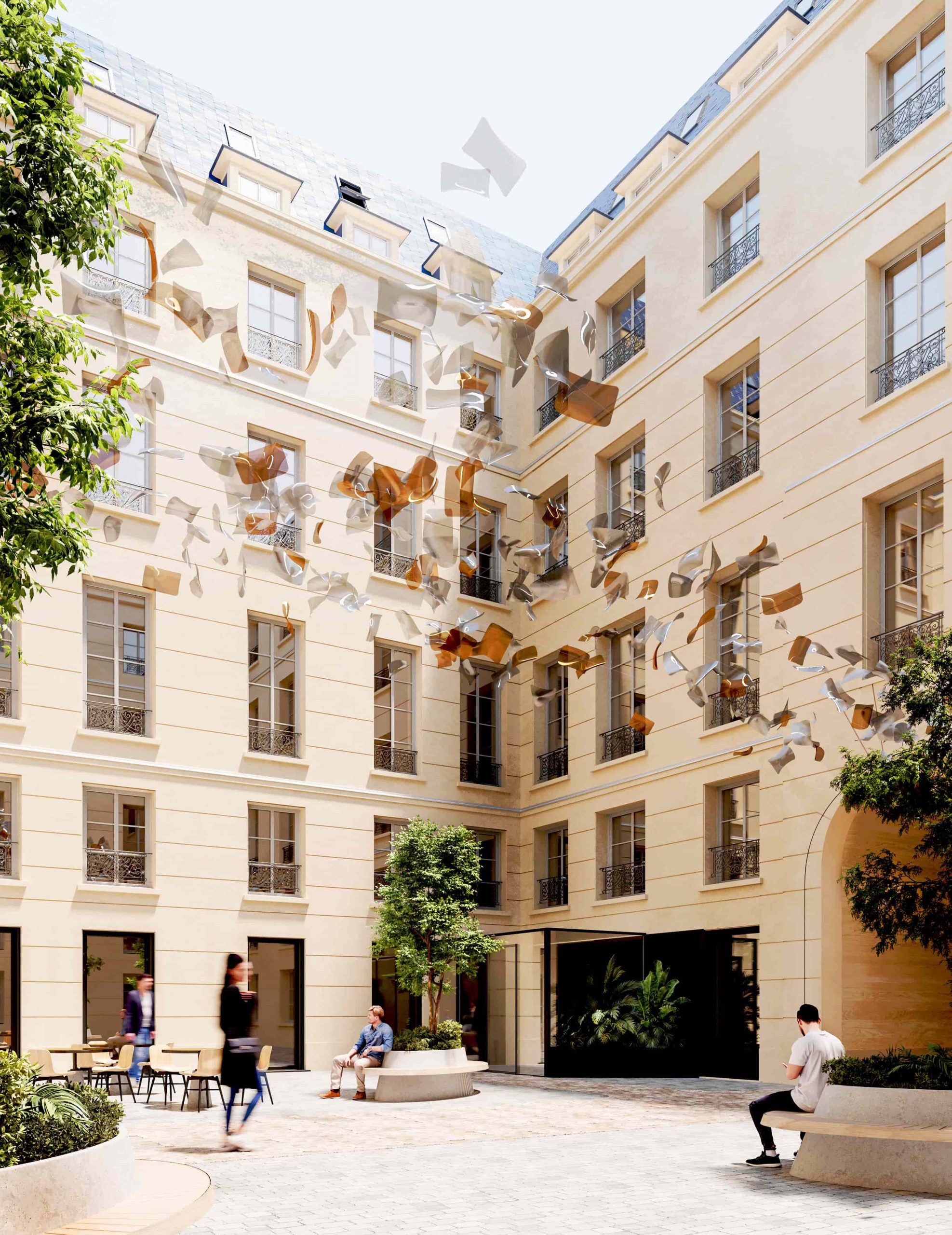 L’art ou l’expression artistique présente dans la cour rend l’immeuble de bureau ouvert sur la ville.